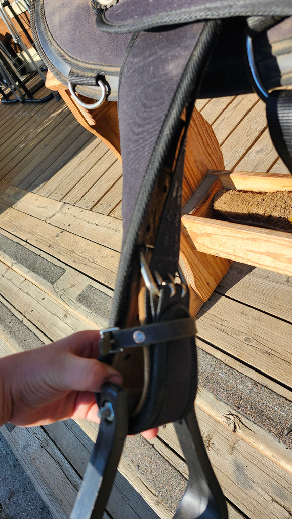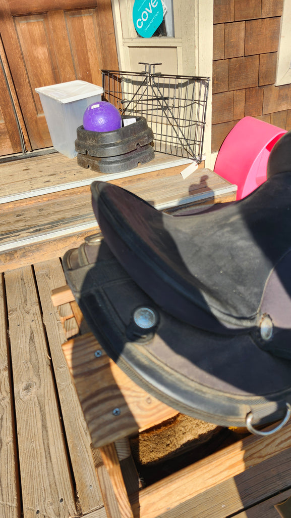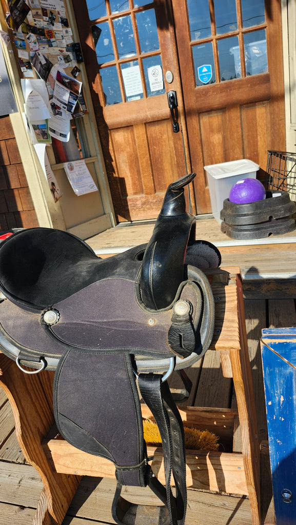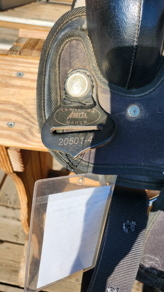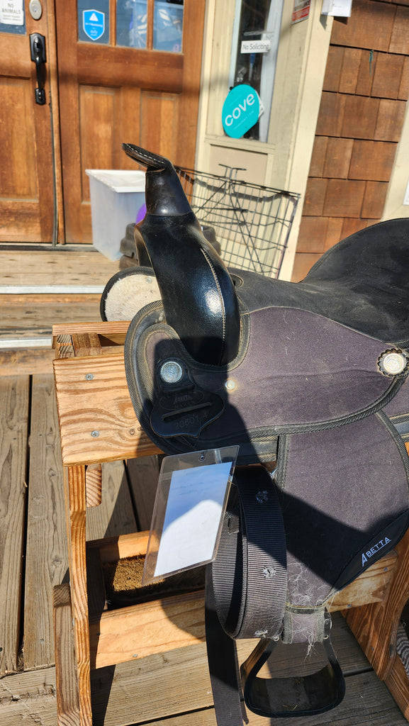This is a Abetta Original Round Skirt Synthetic Western Saddle in fair used condition. This saddle is very lightweight and durable. It comes equipped with a latigo and off billet.