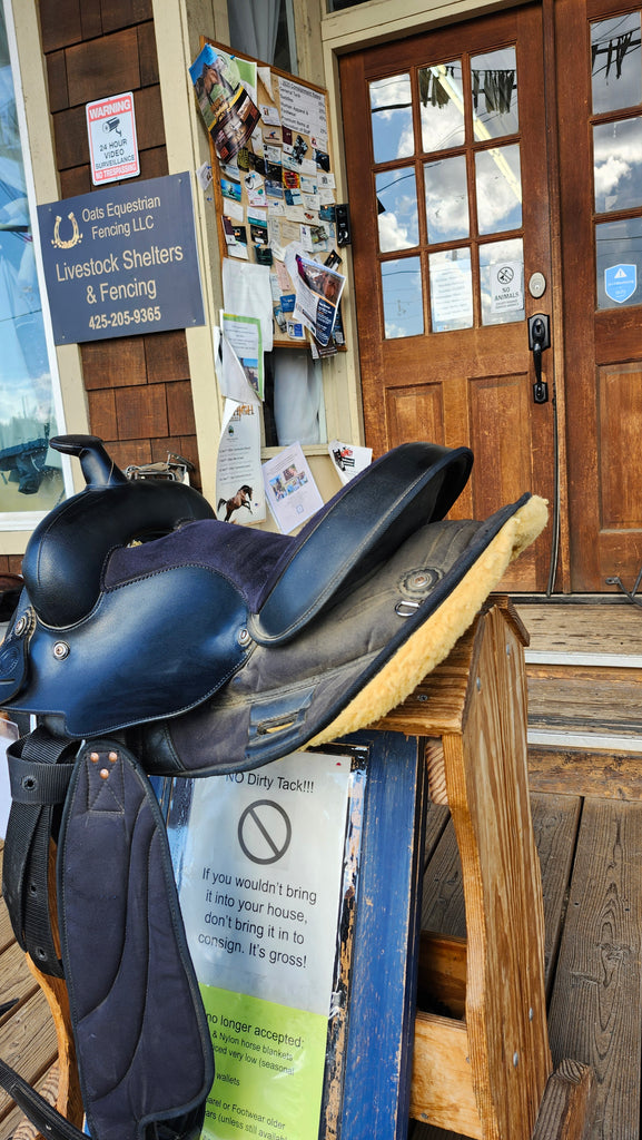 The Circle P Synthetic Equitation Saddle is our best valued everyday western saddle! Made from a composite synthetic material more durable than leather, and requiring considerably less maintenance, this Synthetic Equitation Saddle is perfect for everyday use. It is well made and nicely balanced, with all stainless steel hardware for an authentic look and fleece lined for durability and comfort.