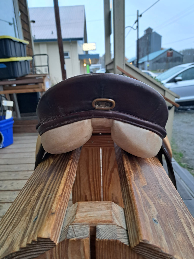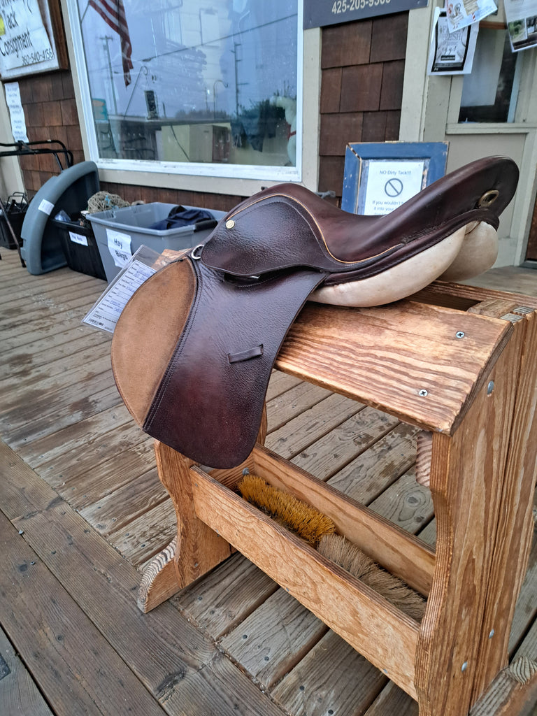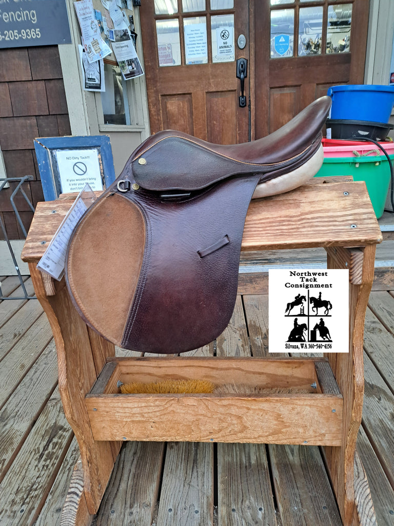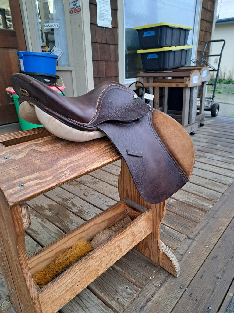 This Collegiate All Purpose Saddle has been well loved and is in good used condition. It features knee rolls.