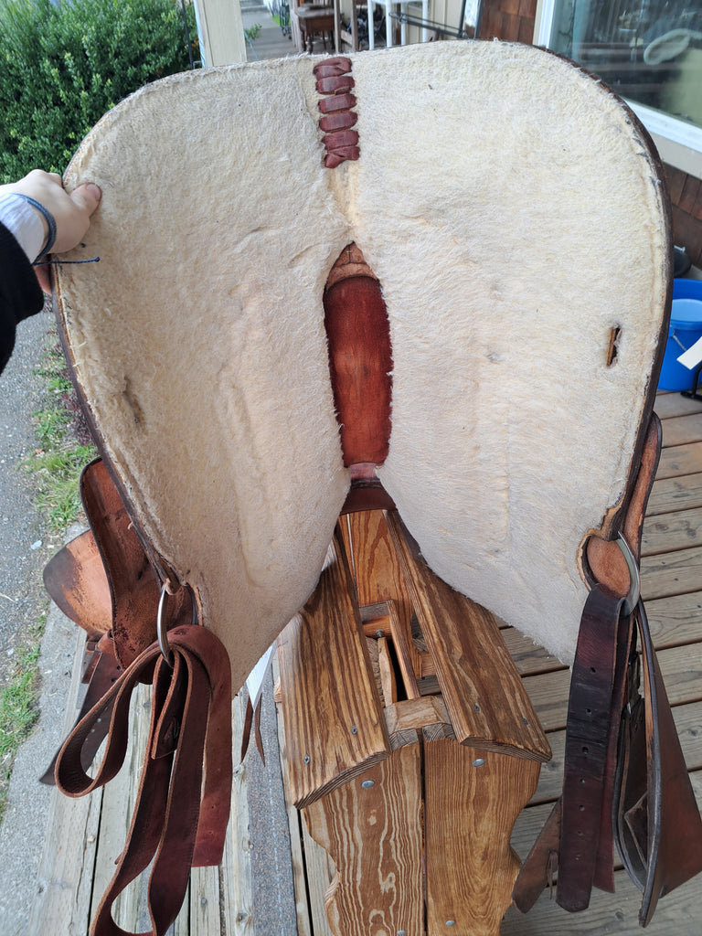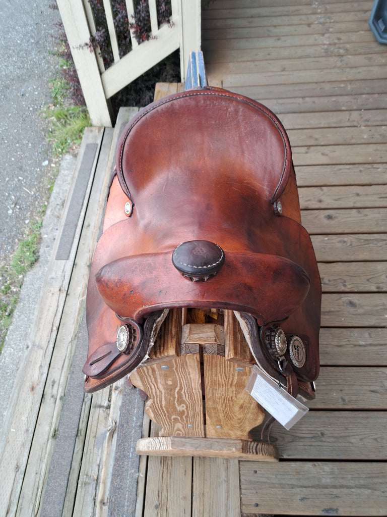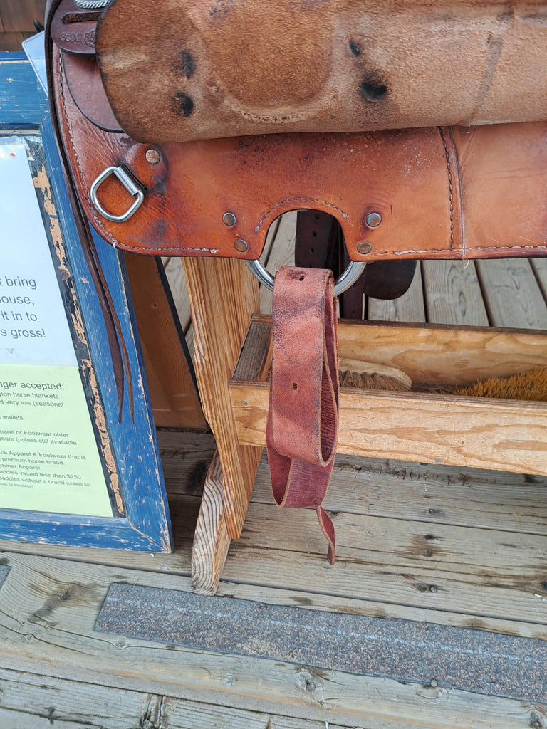 This is a Simco western ranch trail saddle in good used condition. These older simco saddles are built to last, and are well made. It comes equipped with a latigo and off billet. It does not have stirrups, we do have some for sale separately in store (Call or text 360-540-4156 for current inventory)