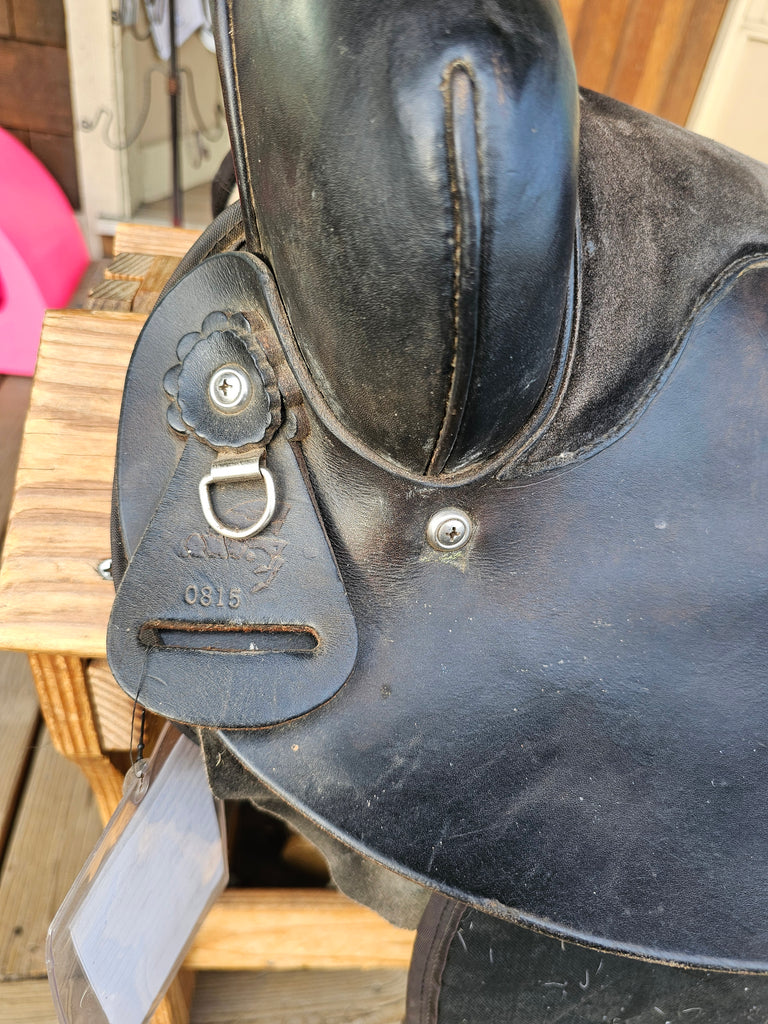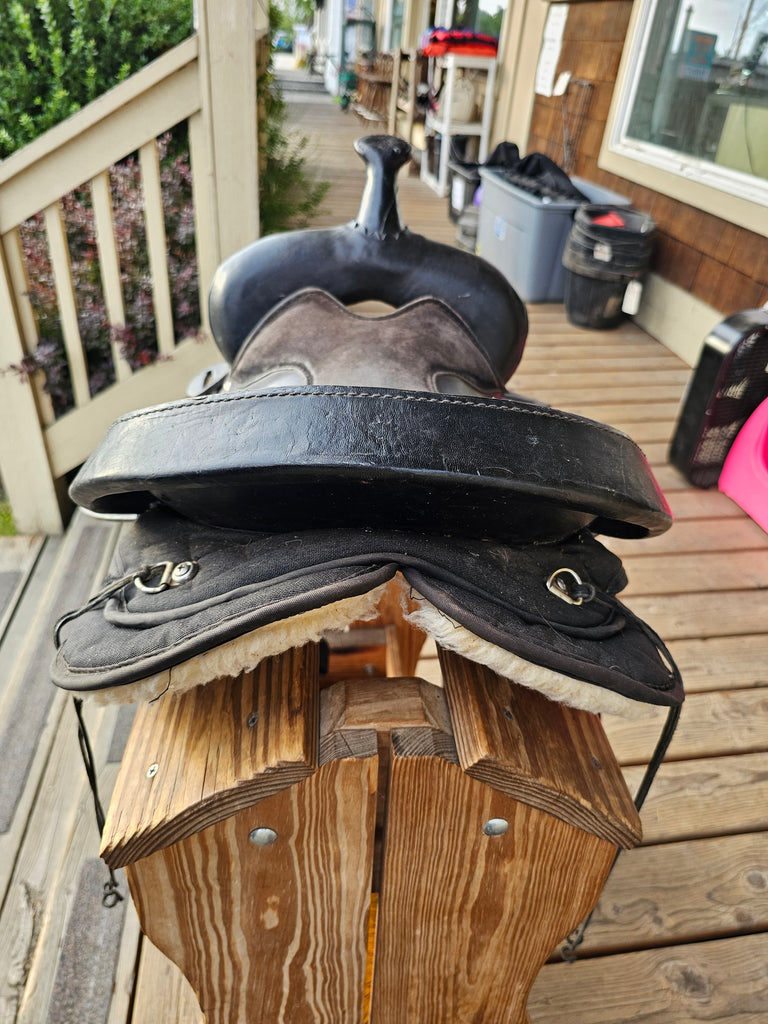 This is a Simco Cordura western saddle in fair used condition. This saddle does show some wear, but still has plenty of miles left in it. It comes equipped with a latigo and off billet.
