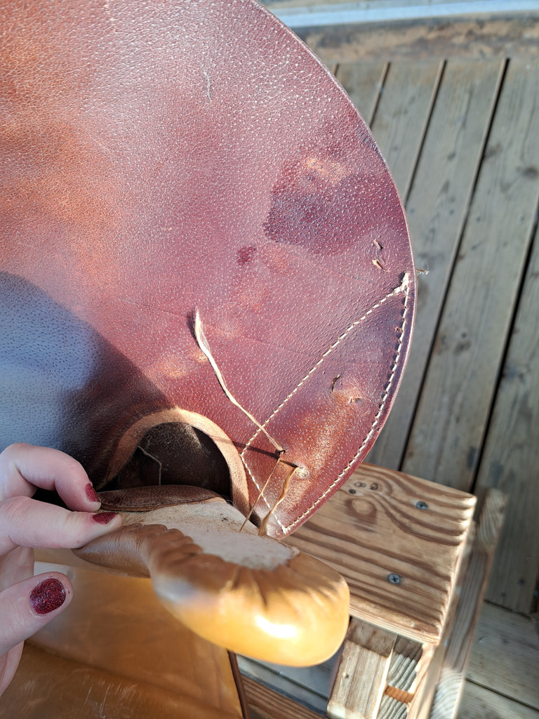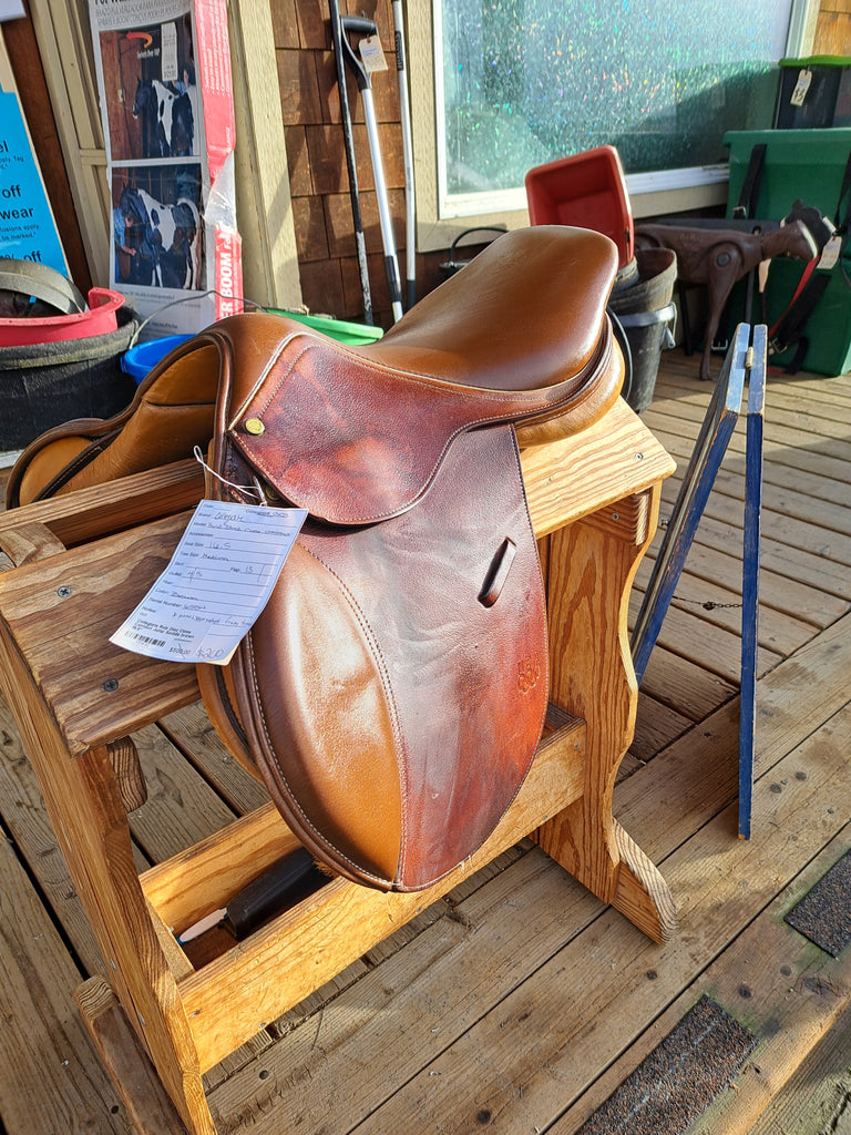 This is a Collegiate ruiz diaz close contact jumping saddle in fair used condition. This saddle does have separation of the panels from the tree at the front (see pic) that should be a quick repair for a fitter.