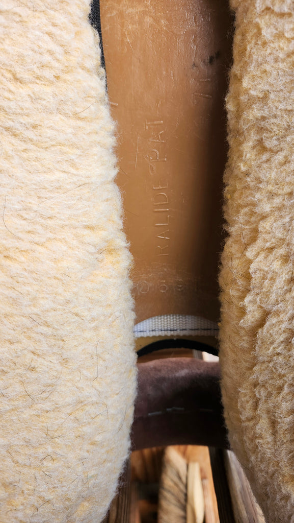 Other features include a 13” barrel front, short 25” rounded skirt, and Ralide with laced suede cushioned stirrups.