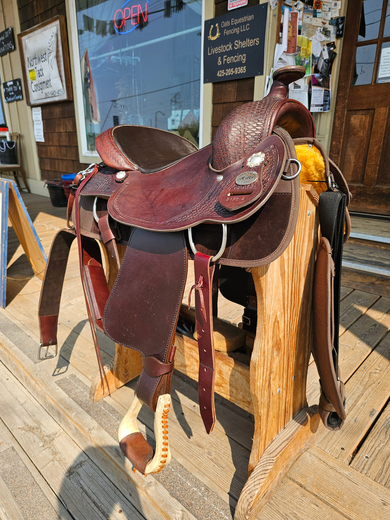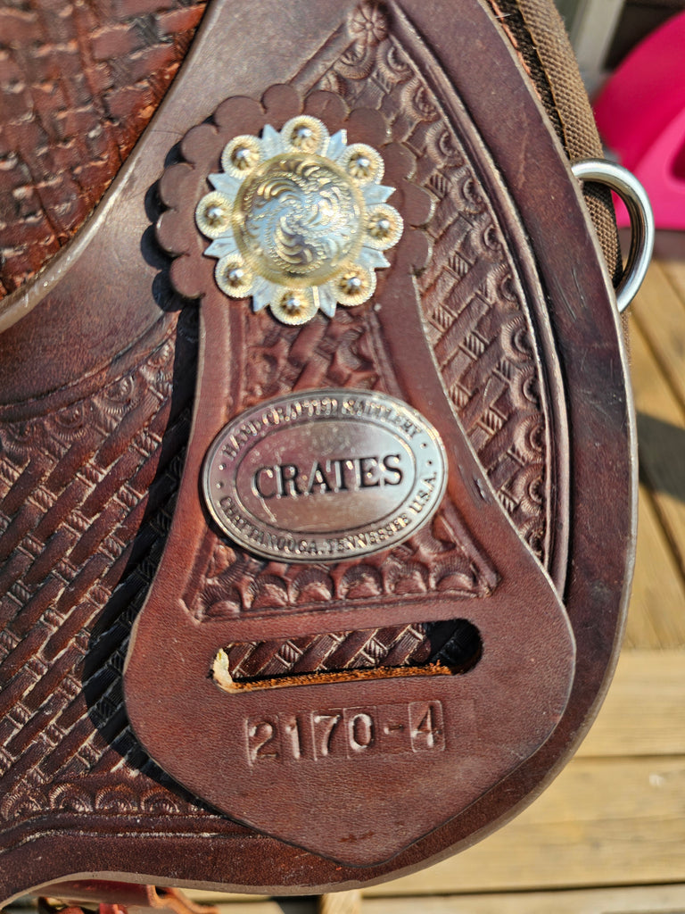 This is a Crates Western Cordura Trail Saddle in excellent used condition. This saddle comes with a set of leather and cordura fenders for the rider that wants to reduce weight. It also comes with a latigo, off billet, and rear cinch with billets.