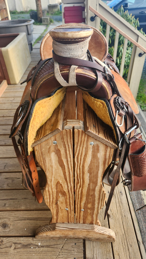 This is a JC Martin Wade Orthopedic Series Ultimate Saddle in good used condition. This saddle features a orthopedic ultra lite tree (see below). It comes equipped with latigo, off billet, rear cinch, and rear cinch billets.