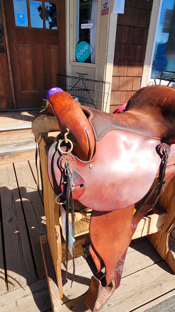 This is a Oak Brand Leather Endurance Saddle in good used condition. This saddle is well made from a small company, and features quality hardware and leather. It comes with an off billet