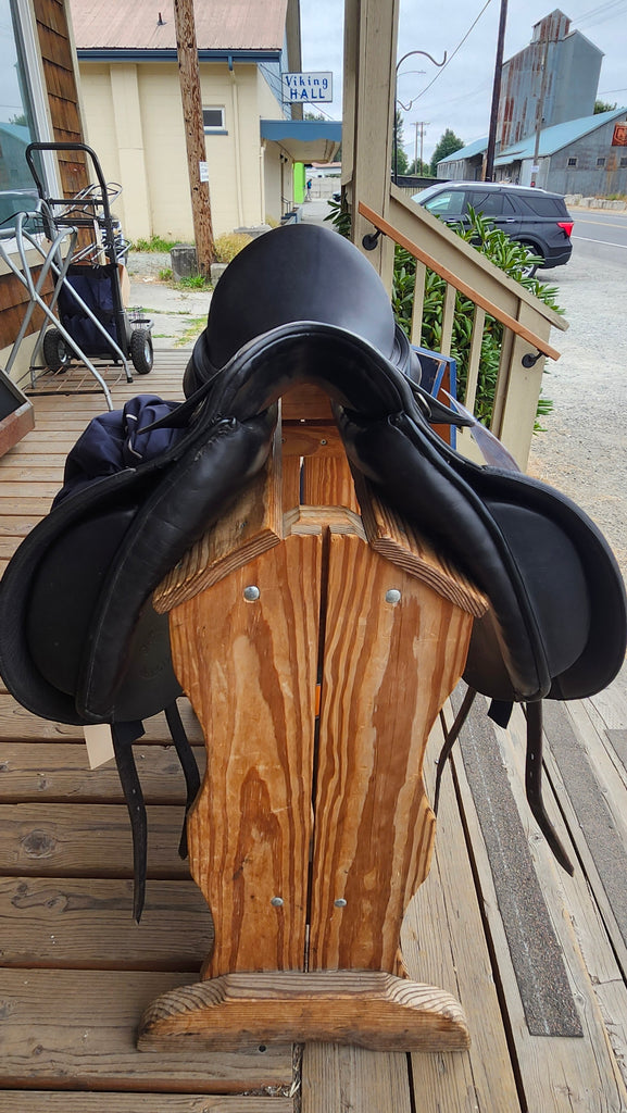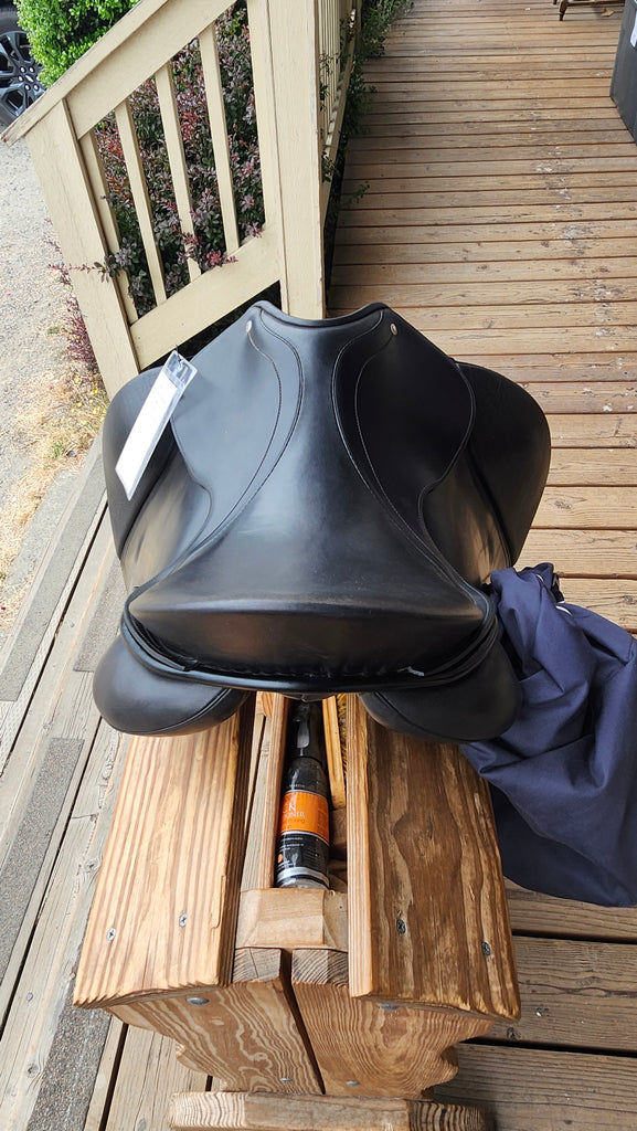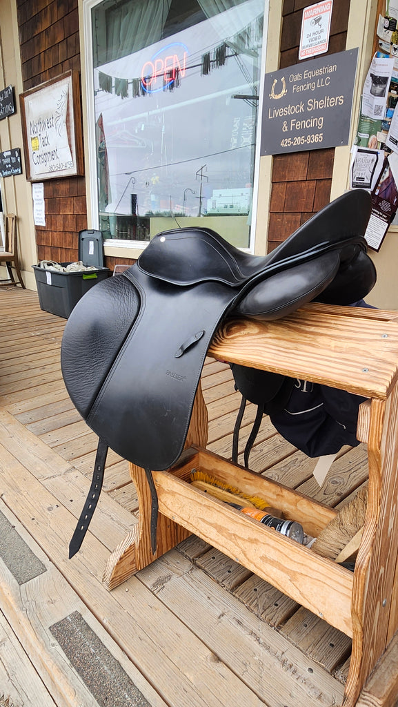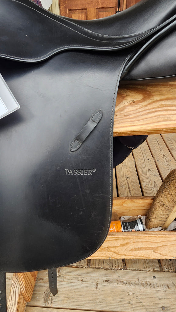 This is a Passier Compact Dressage Saddle in excellent used condition. This saddle has been well cared for and shows only regular wear. It comes equipped with a Passier saddle cover.