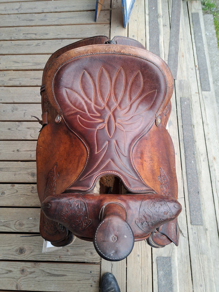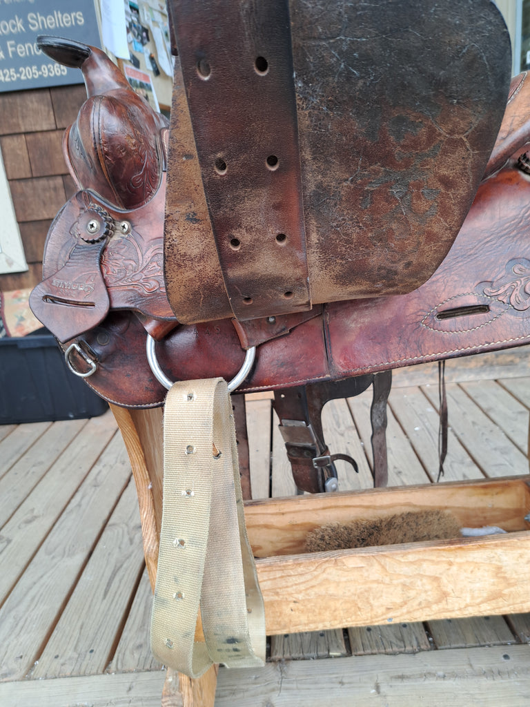 This Simco Western Trail Saddle is an older model that still has plenty of miles left in it! It comes with an off-billet, and a latigo.