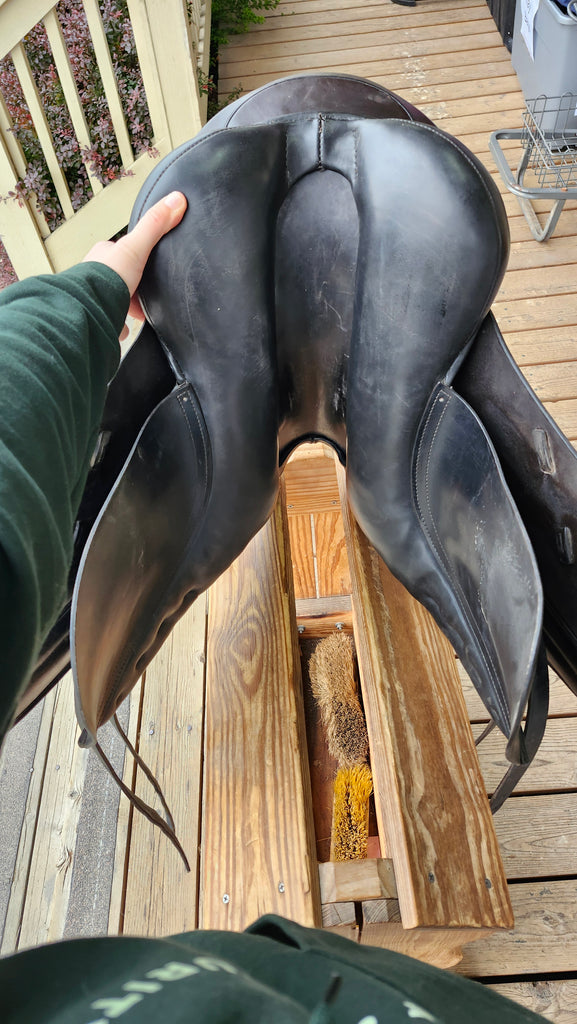 This a used 17.5" Albion Legand 500 Dressage Saddle, in very good condition. This saddle features long flaps and a high pomel.