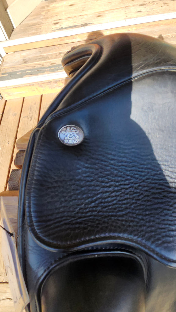 This 17.5" Fairfax MDG Monoflap Dressage saddle is in great used condition. Features a deep seat with a slightly forward flap as well as a larger external thigh blocks.