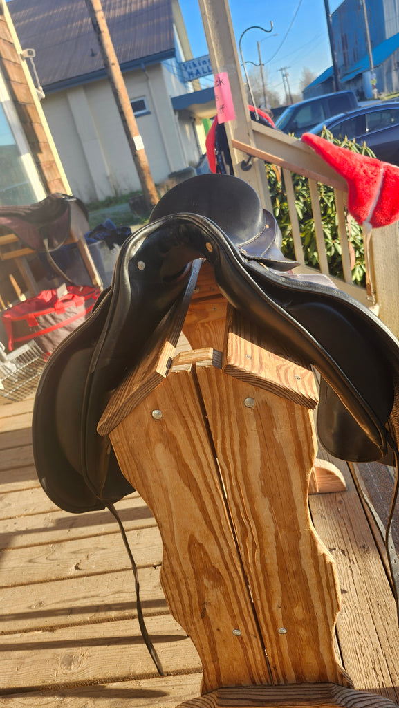 This is a Albion SL dressage saddle in good used condition. This saddle shows regular wear including minor scuffs and scratches.