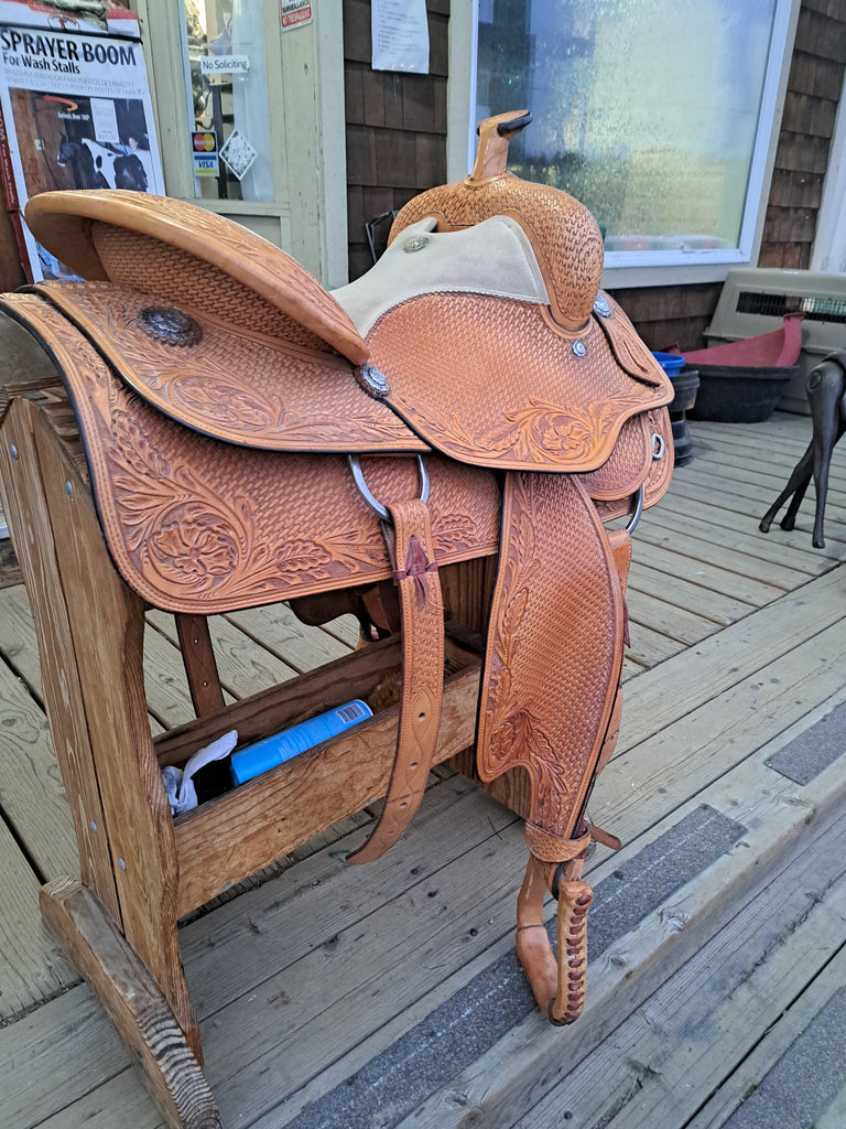 This is a Bob Avila Limited Edition Reining Saddle in excellent used condition. This saddle was only used a few times when purchased, and then spent the rest of it's life in a living room. It is ready to get back on a horse! It comes equipped with a latigo and off billet.