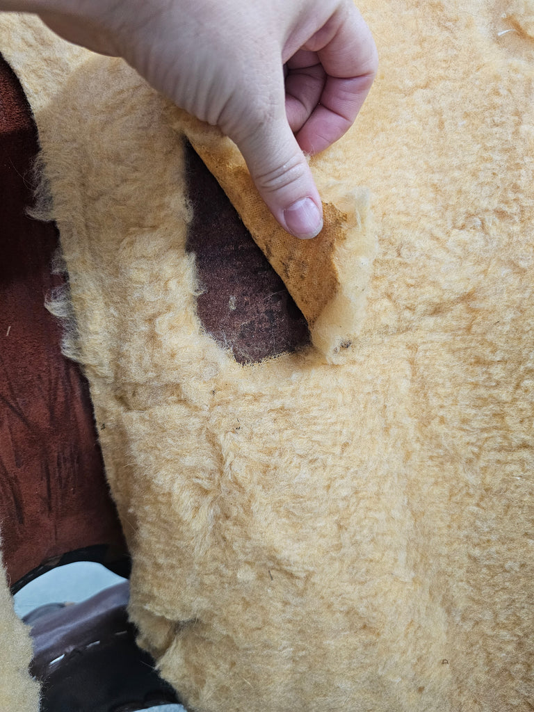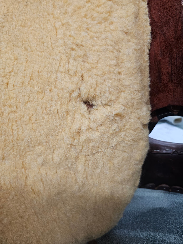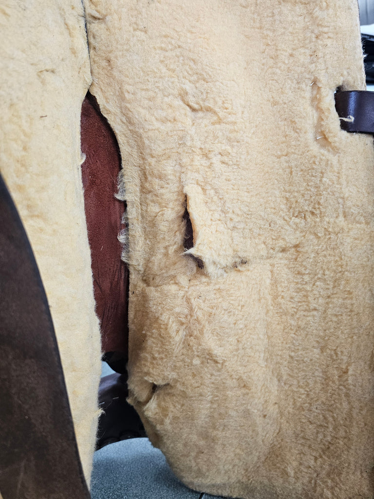 This is a Circle Y All Around Western Trail saddle in decent condition. While the leather is in great shape, unfortunately the fleece on the underside got torn on a saddle rack. This saddle will likely need a full re-fleecing. We have discounted the price to reflect this.