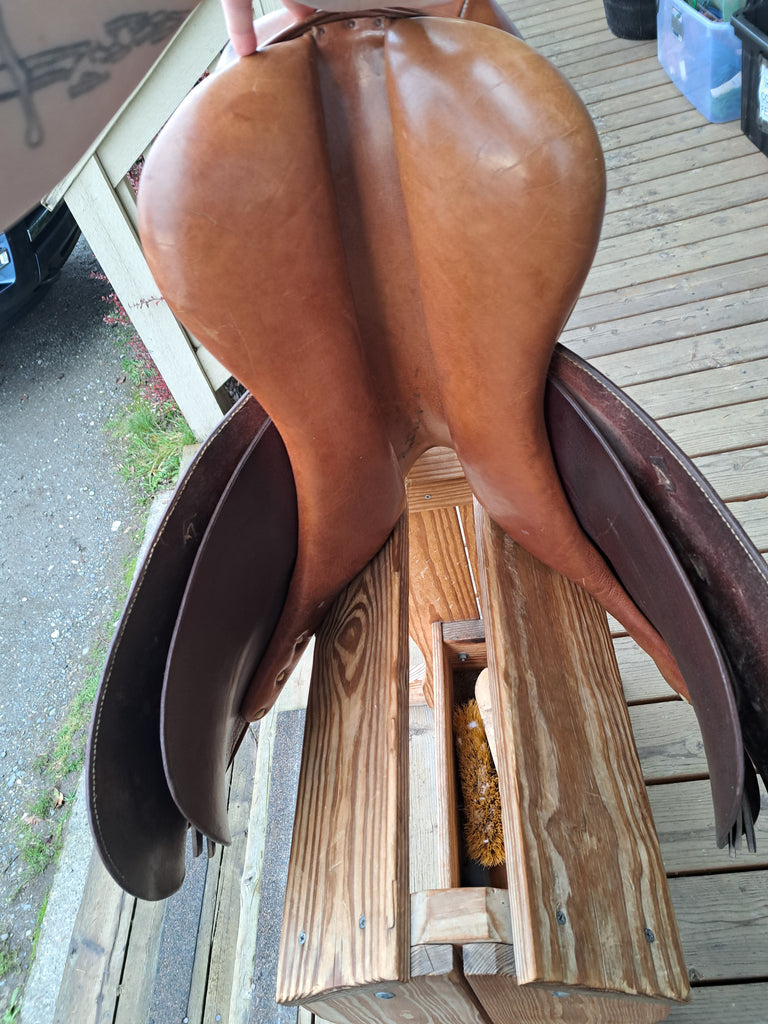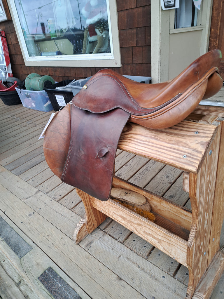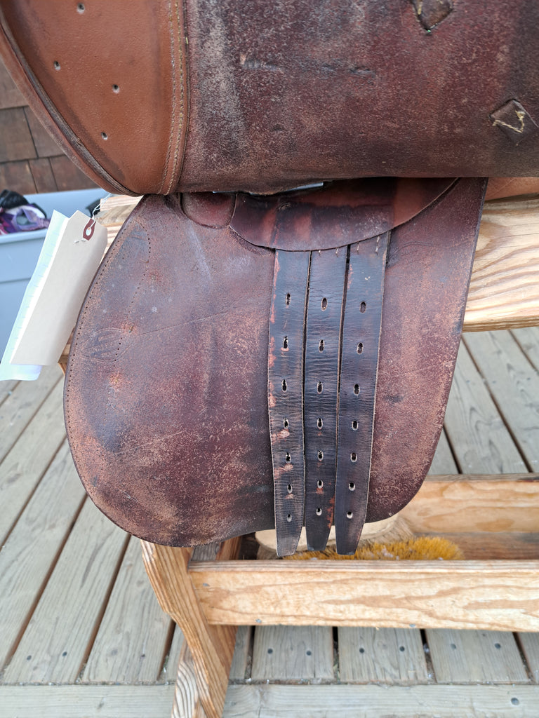This HDR Close Contact Saddle is an older model that has been well loved and would make a great schooling saddle. It shows normal signs of wear and discoloration.