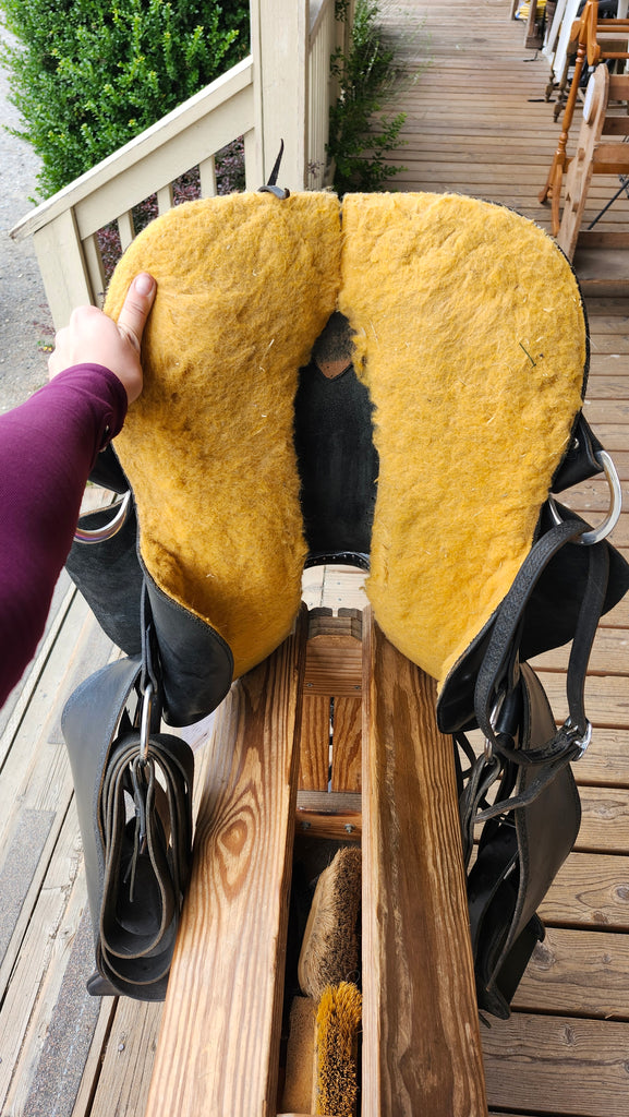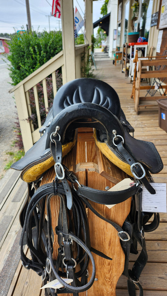 This is a Henry Miller Double Creek Endurance Saddle in good used condition. This saddle features a comfortable padded seat for extra comfort on y/our long distance rides. It comes equipped with a latigo, off billet, breast collar, bridle, and two sets of reins.