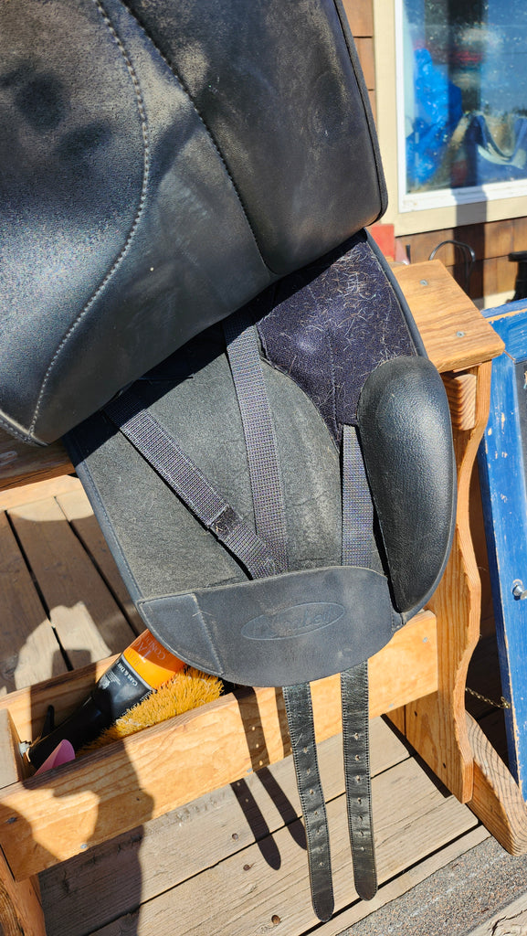 This 17" WIntec Isabell Werth Dressage Saddle is in great used condition. Features a synthetic seat on flapsaAlong with the exanchangeable gullet system. Comes with Velco blocks as well.