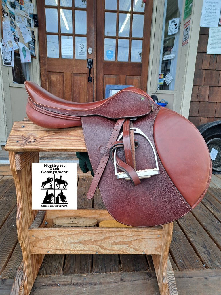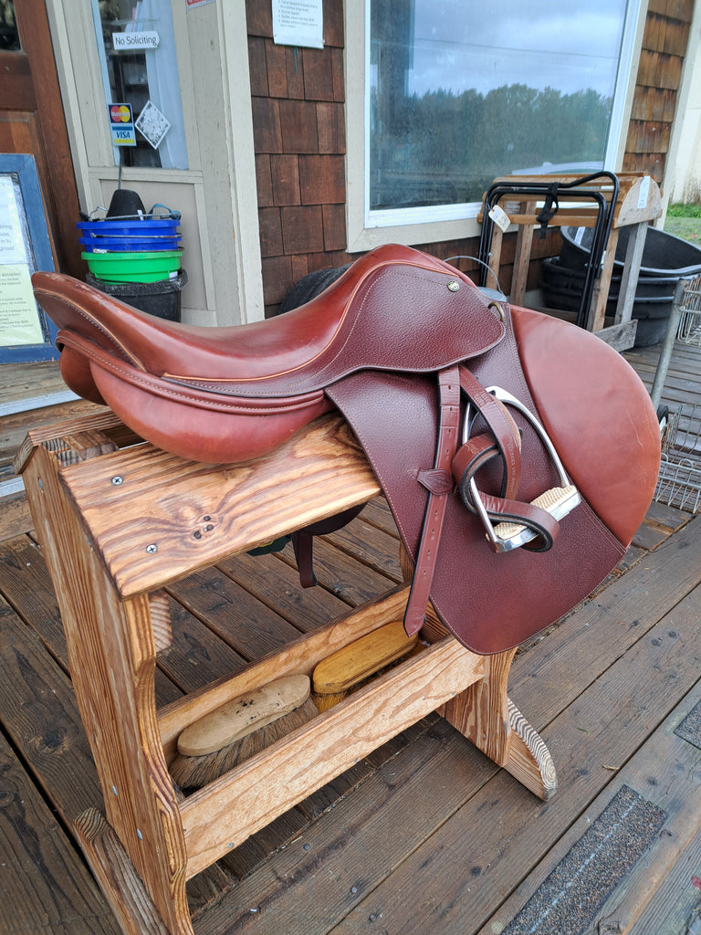 This is a HDR Close Contact Pro Saddle in excellent used condition. This saddle is a great option for hunter riders looking for an attractive saddle without the hefty price tag. It comes equipped with a girth, leathers, irons, and a cover.