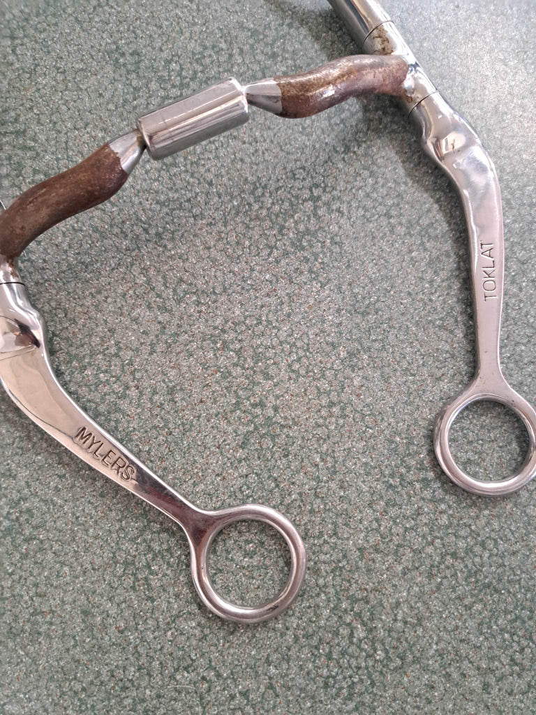 This is a used but still in good condition mylers flat shank with low port comfort snaffle.