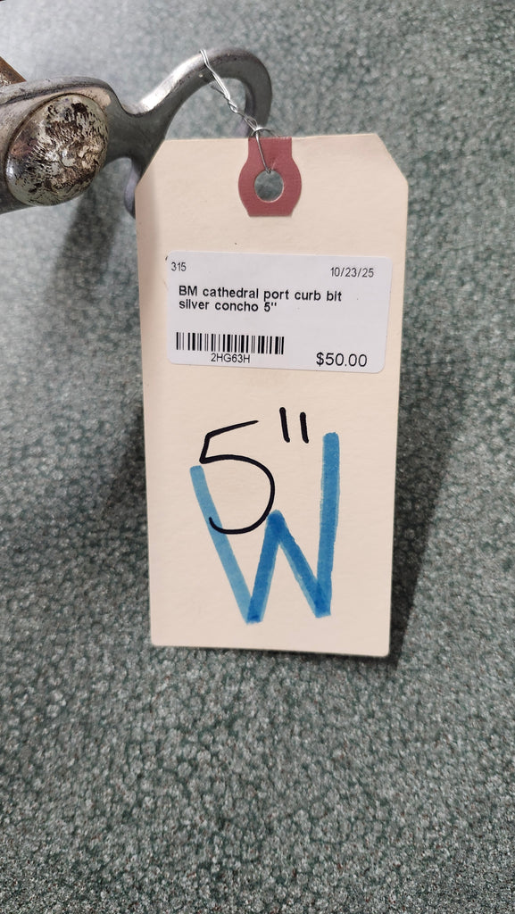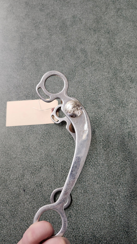 This 5" BM Cathedral Ported Curb Bit is in good used condition with a few sign of tarnishing on shanks. the shanks are aluminum with a sweet iron mouth piece.