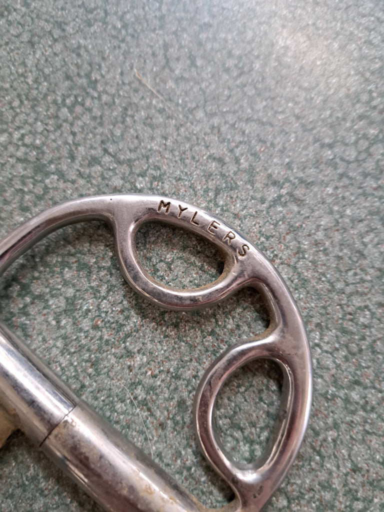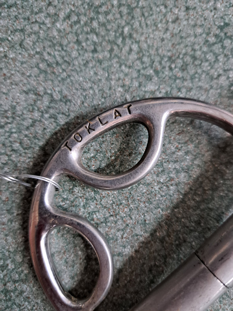 This is a used but still in good condition Myler D Ring correctional bit with chain.