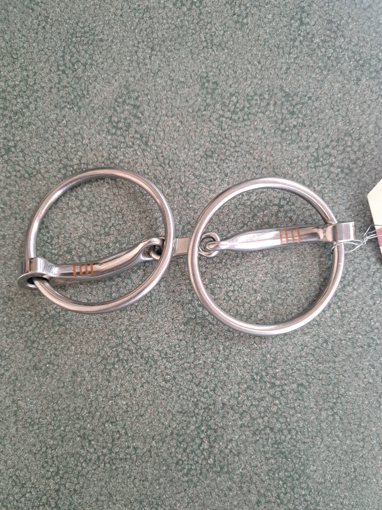 This is a used but still in good condition mylers loose ring french link snaffle bit.