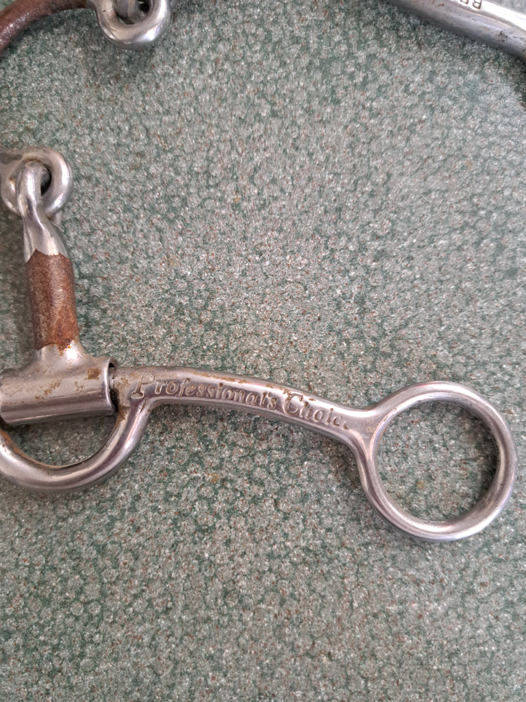 This is a used but still in good condition professional choice derby bit with a leather curb strap.
