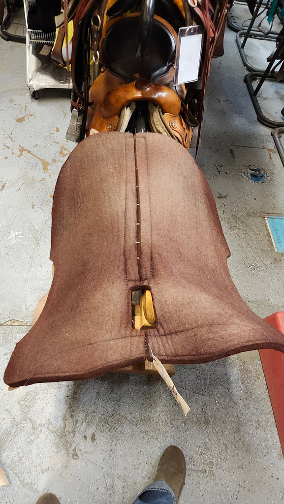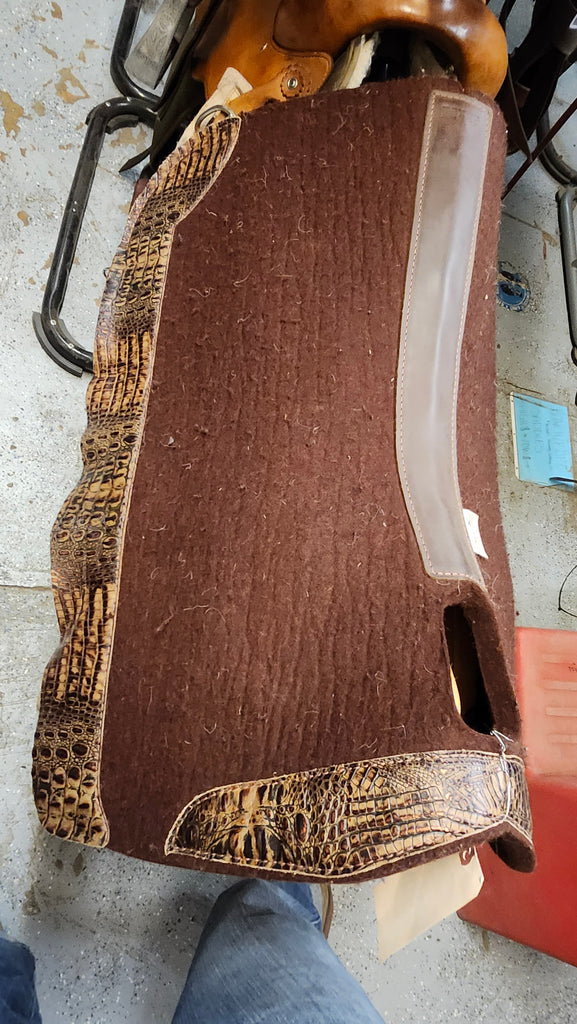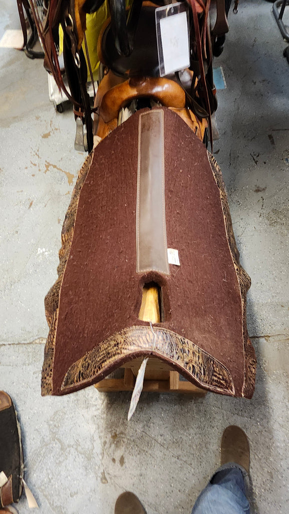 This is a used 5 Star Performer Western Pad, in good condition. Featuring gorgeous tooling on the leather wears.