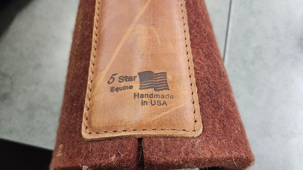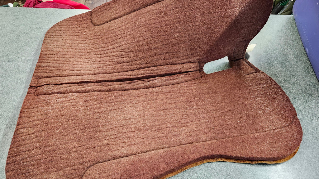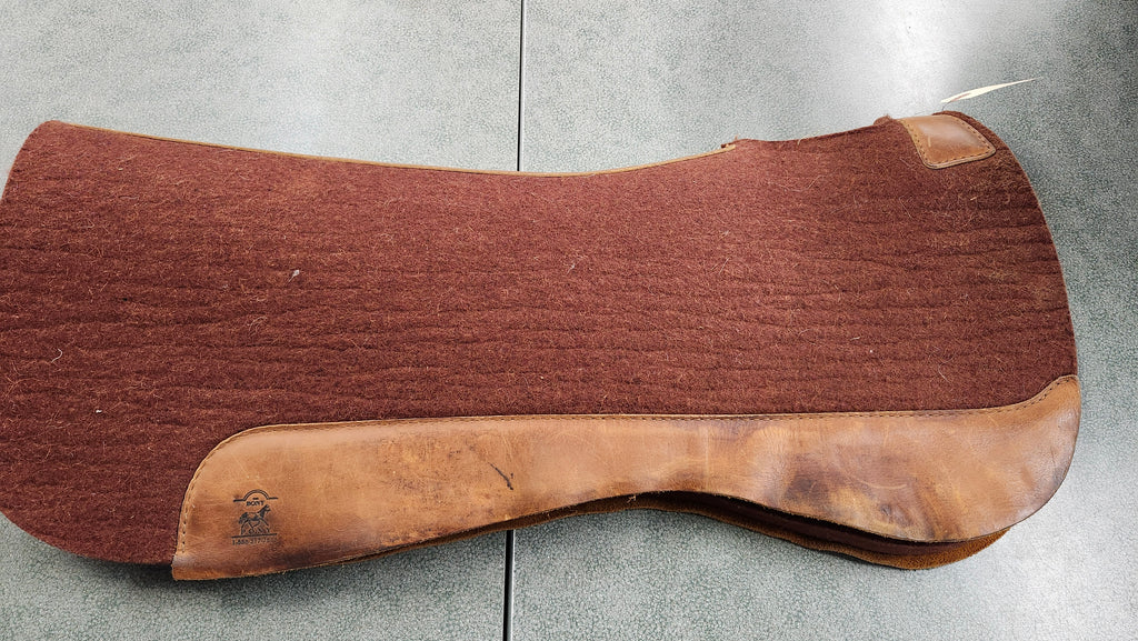 This is a used but still in good condition 5 star wool all around western pad. This pad is relatively clean, there is only slight hair on the underside.