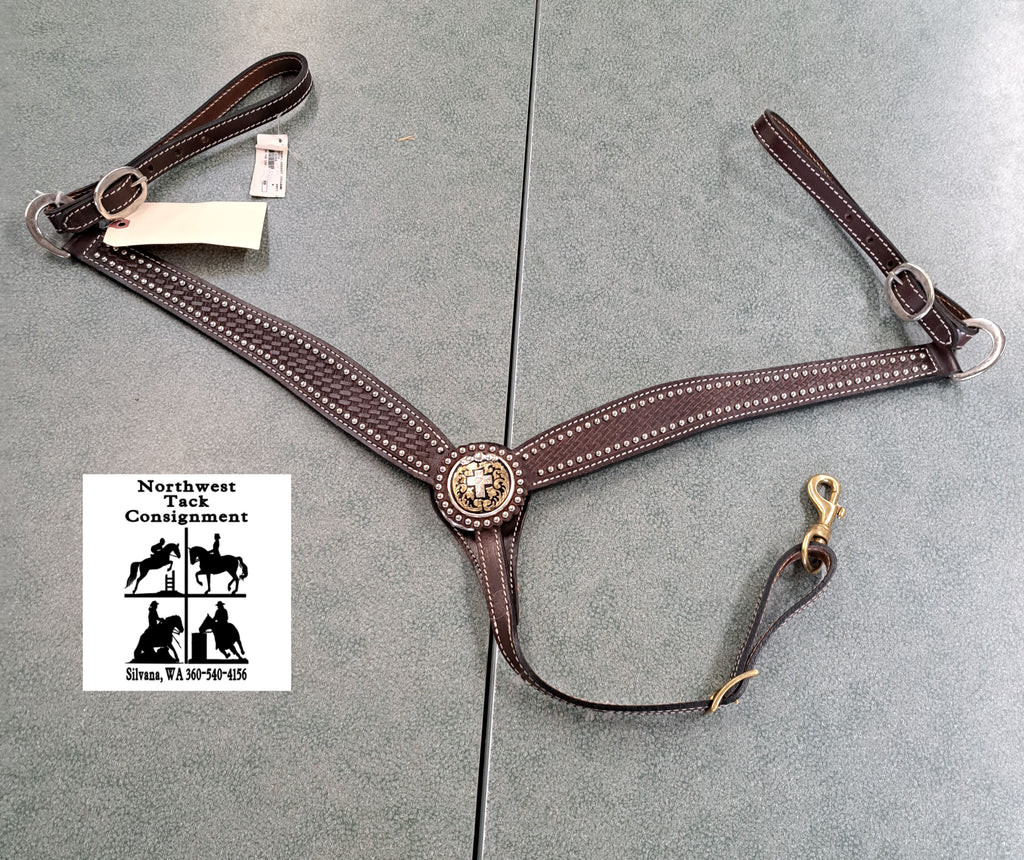 This is a new without tags cowboy decor western breast collar with studs and tooled leather.