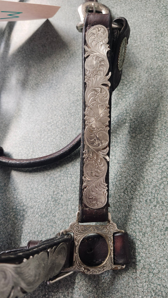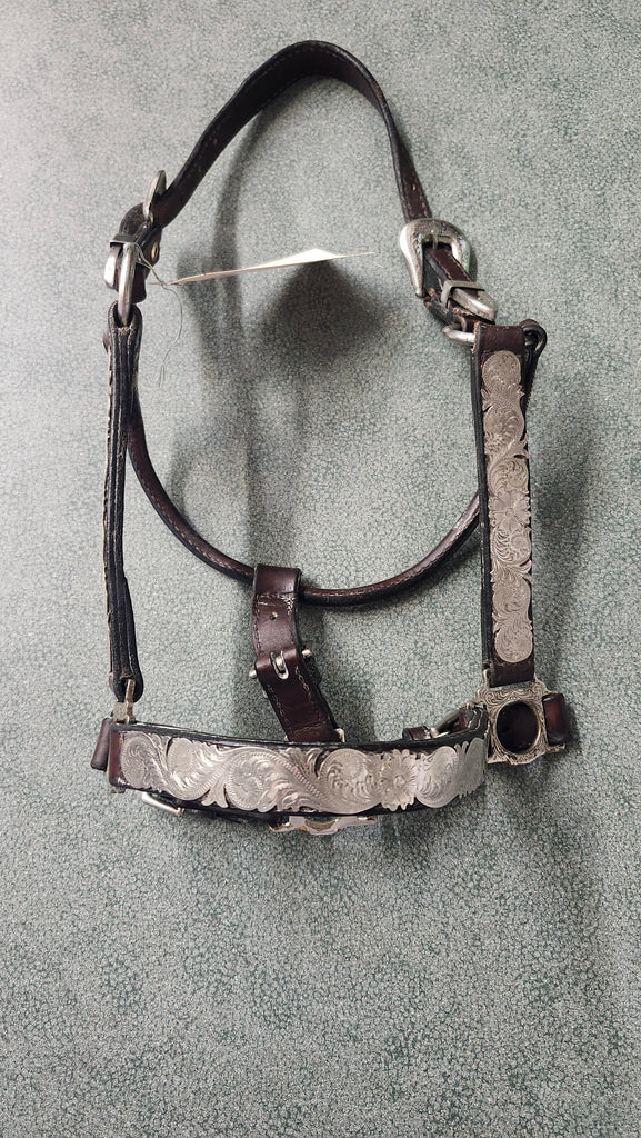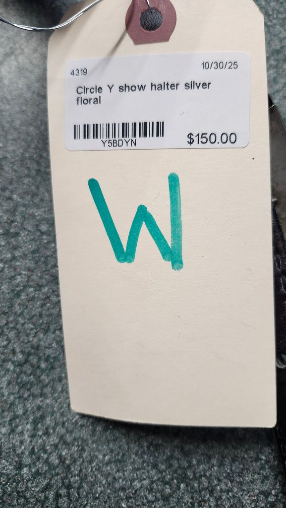 This Circle Y Show Halter is in great used condition. Features a Beautiful floral design on the silver.