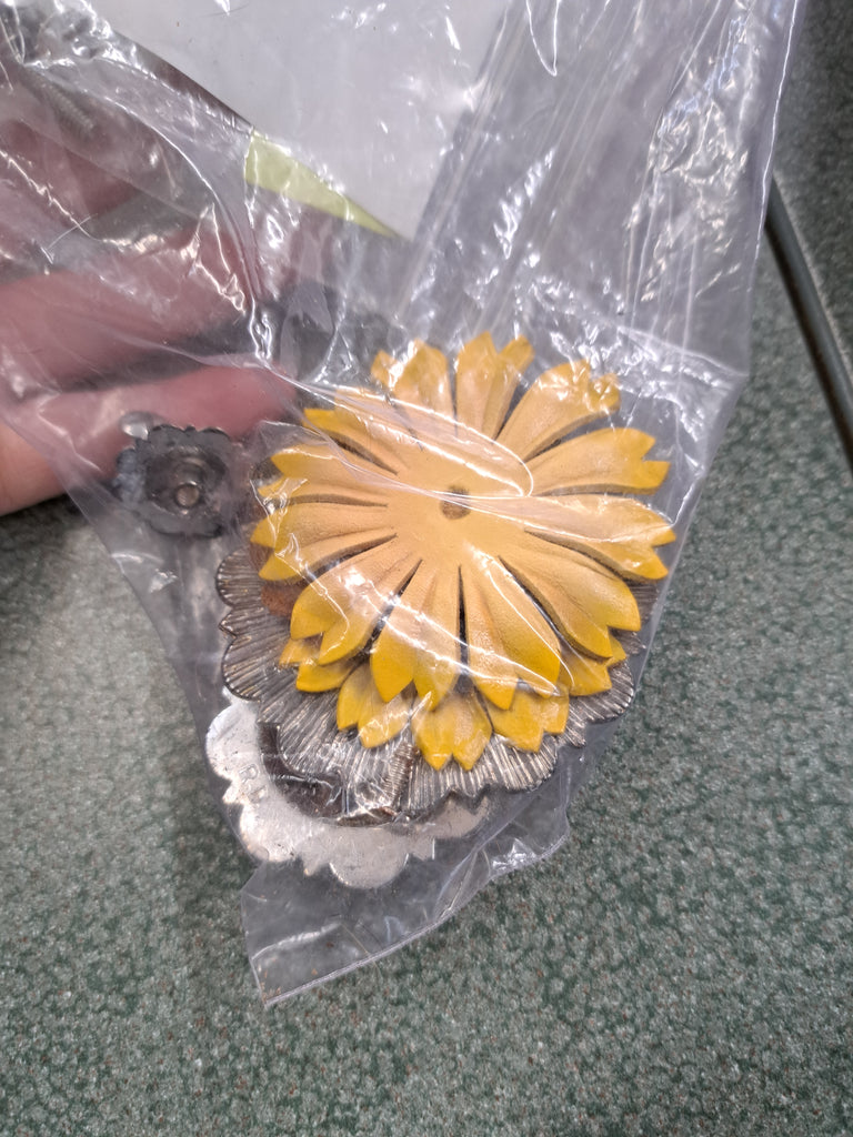 This is a beautiful custom made tack set by rodeo drive. This tackset includes extra hardware, conchos and leather flower pieces. This set also includes a padded rodeo drive bridle bag.