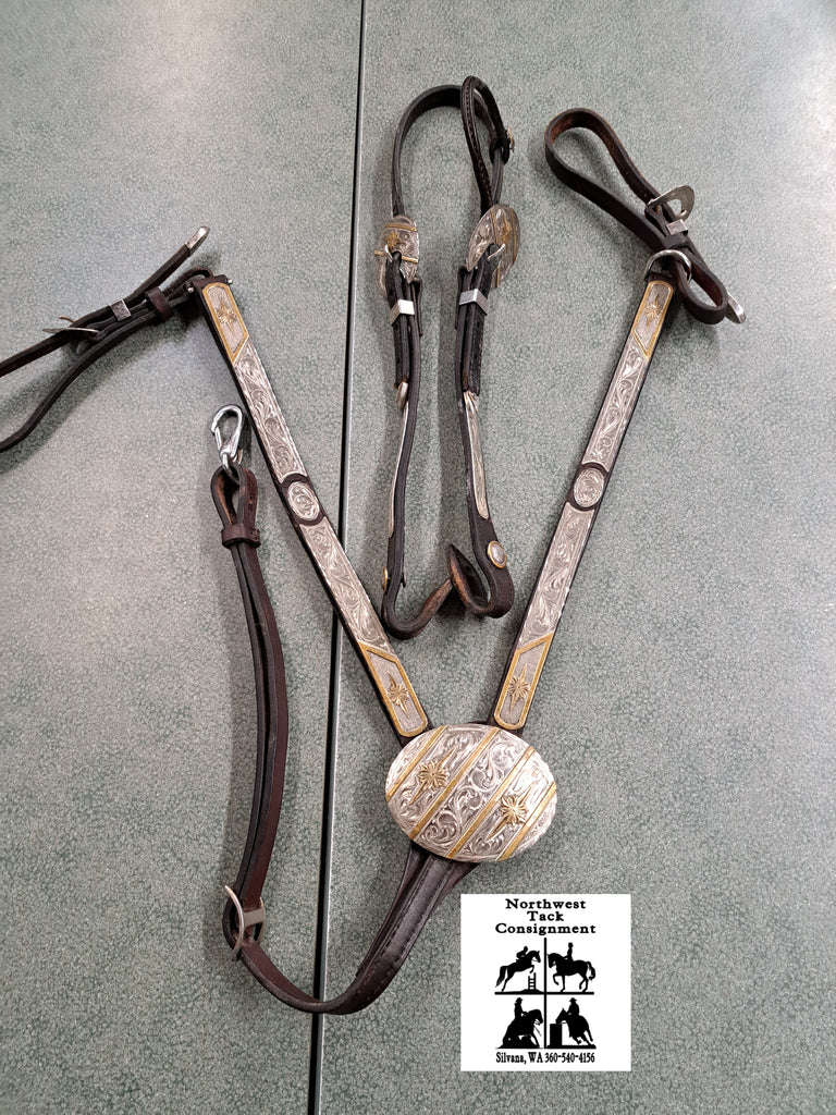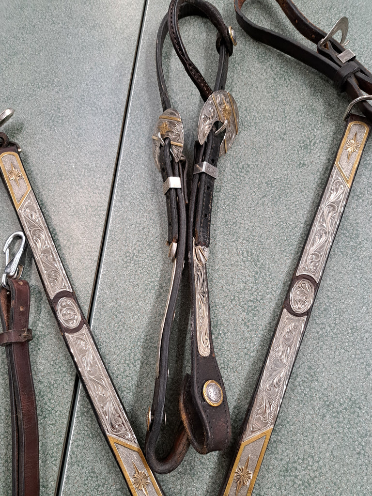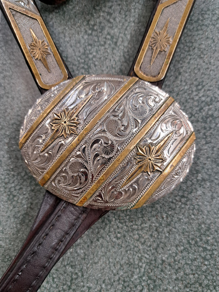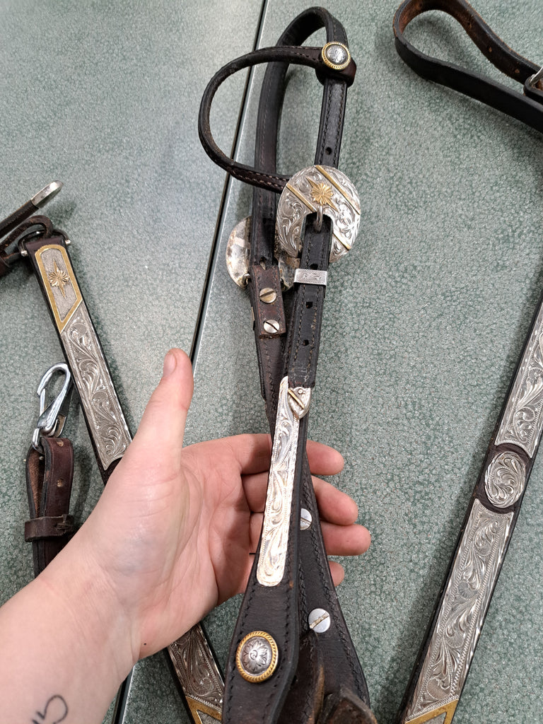 This is a used but still in good condition Dale Chavez vintage single ear show bridle.