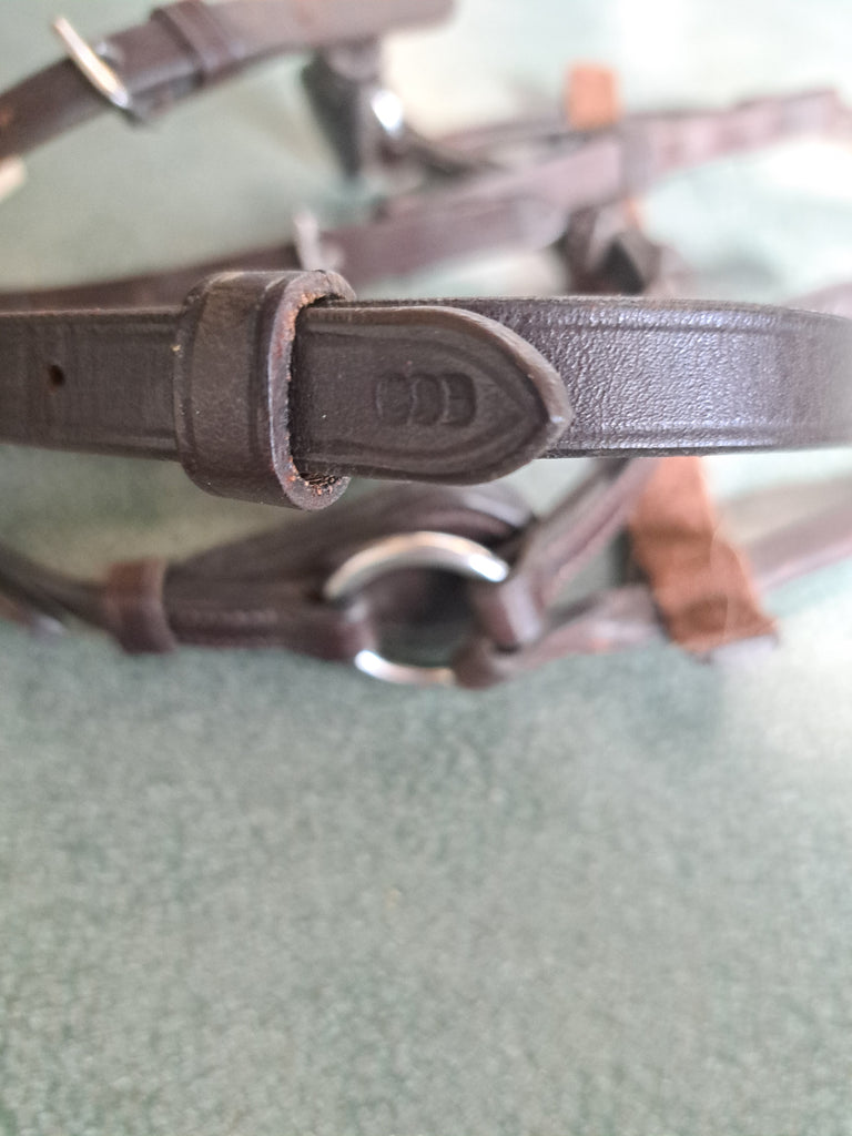 This is a used but still in excellent conditon ergonomic bridle with a crystal brownband which is in perfect condition with no missing stones.