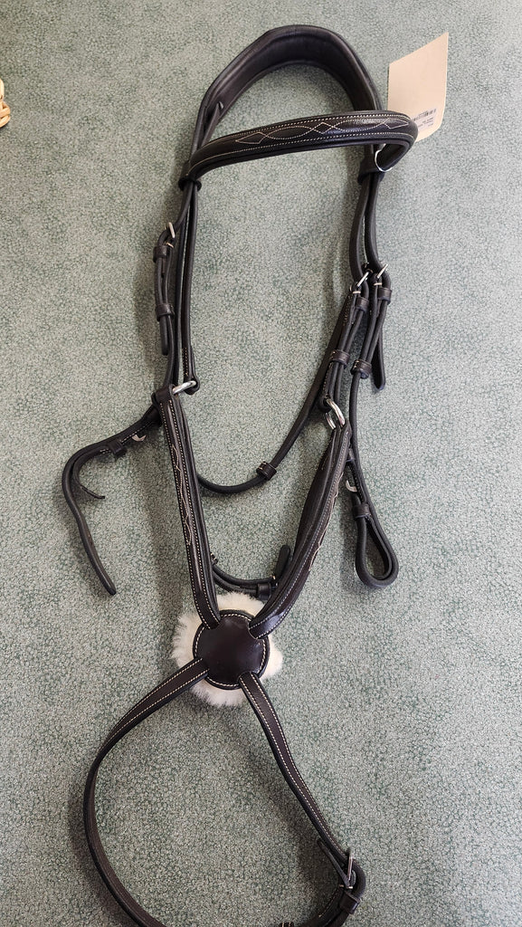 This is a used but still in great condition fancy stitch figure 8 bridle with padding and fleece.