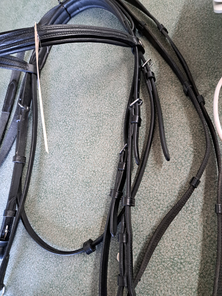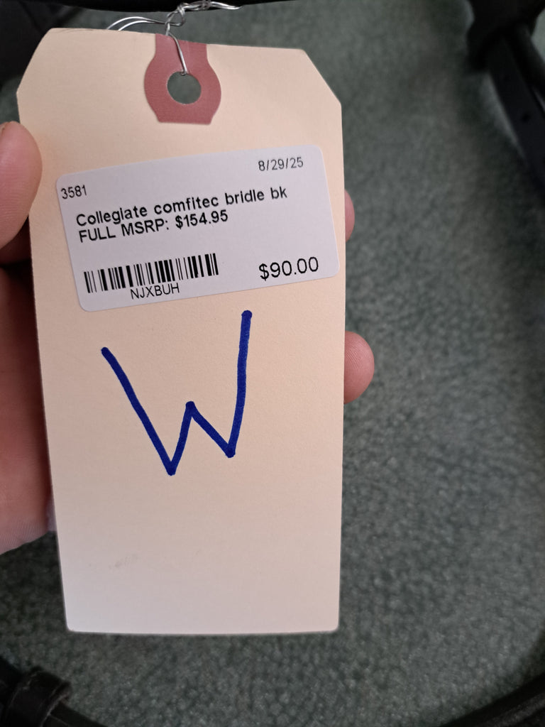 This FULL Collegiate Comfitec Bridle is in excellent used condition. Features an anatomical shape with plain browband.