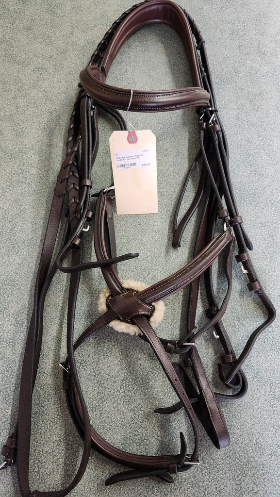 This is a used but still in excellent condition HDR monocrown figure 8 bridle which includes a pair of laced reins.