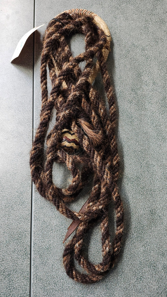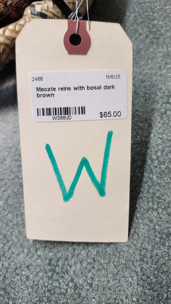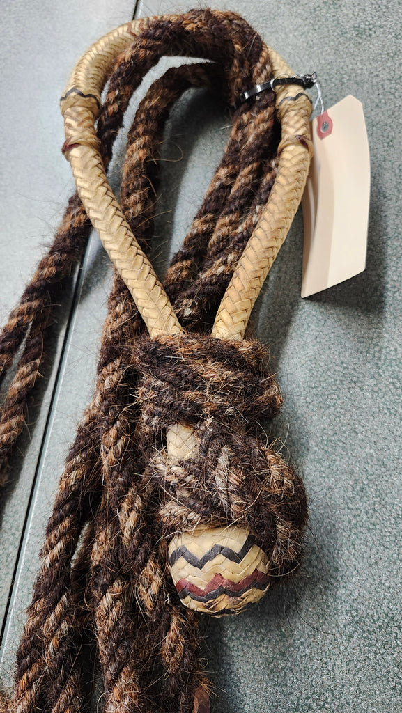 This Mecate Reins With Bosal is in great used condition. The Mecate Reins are brown and tan.