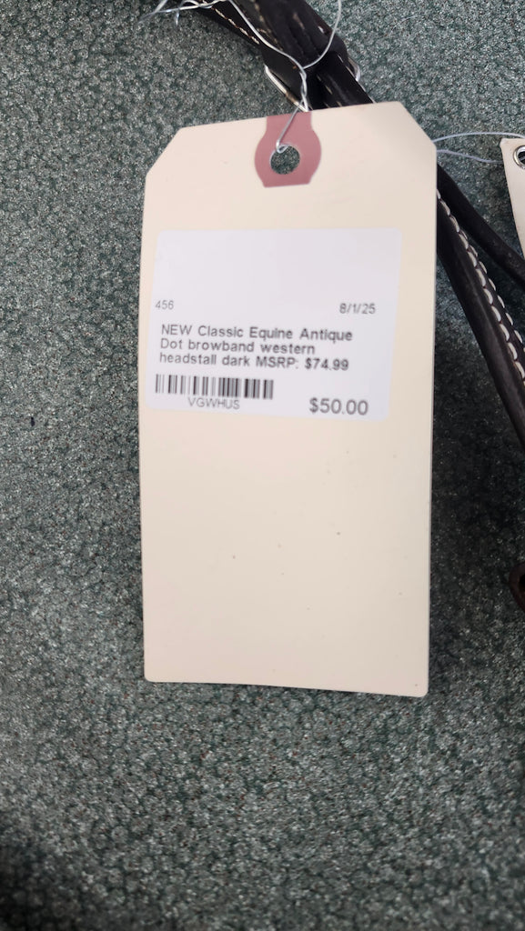 This NEW Classic Equine Antique Dot Browband Western Headstall is in brand new condition with the tags still attached.
