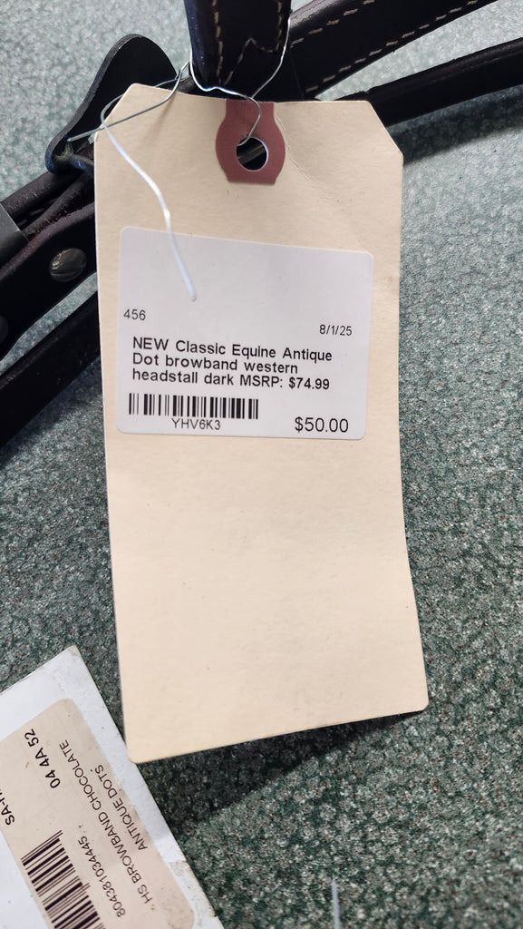 This NEW Classic Equine Antique Dot Browband Western Headstall is in brand new condition with the tags still attached.