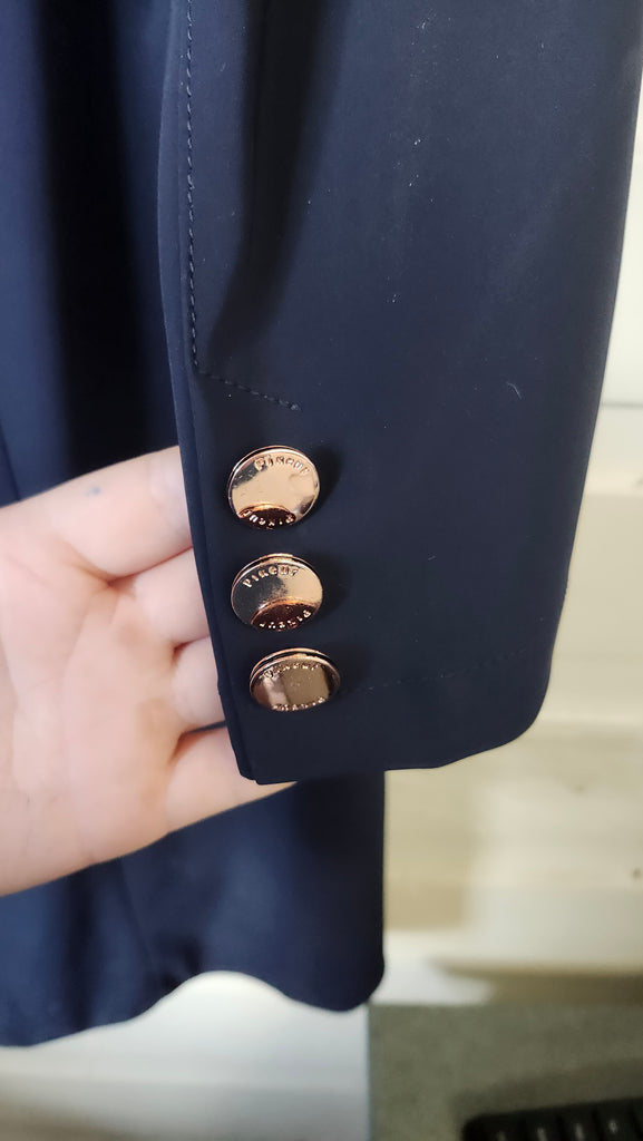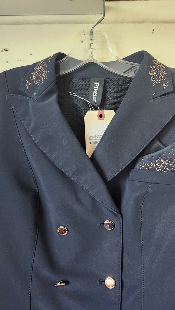 This Pikeur Ladies’ Lilien Shadbelly is in excellent used condition. Features Rose Gold accents on collar, points and pocket square. weights included