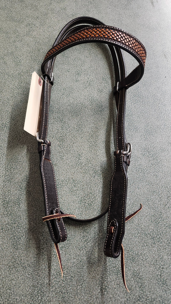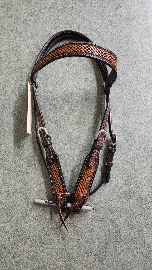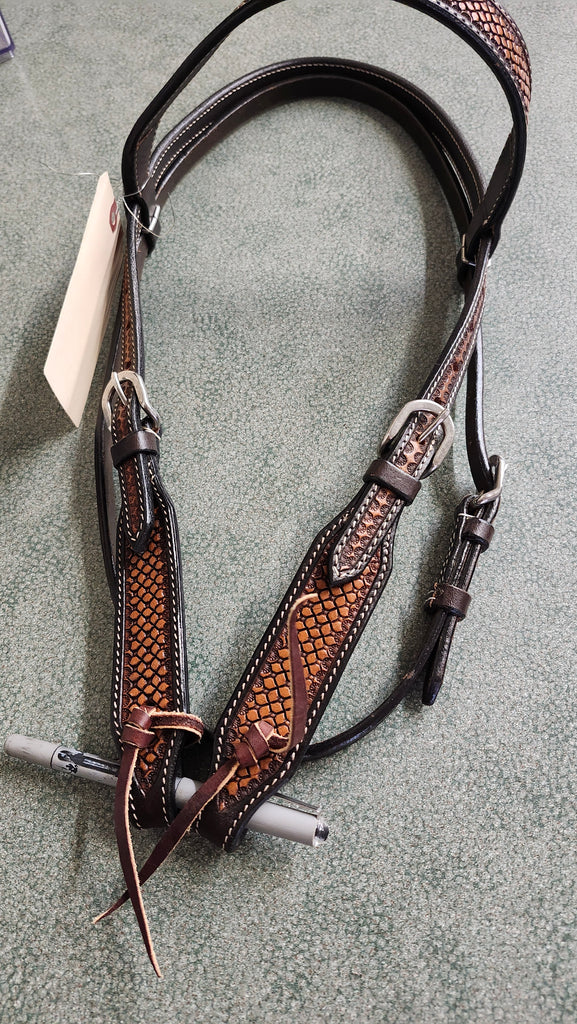This is a new without tags professional choice tooled leather browband headstall with basketweave.