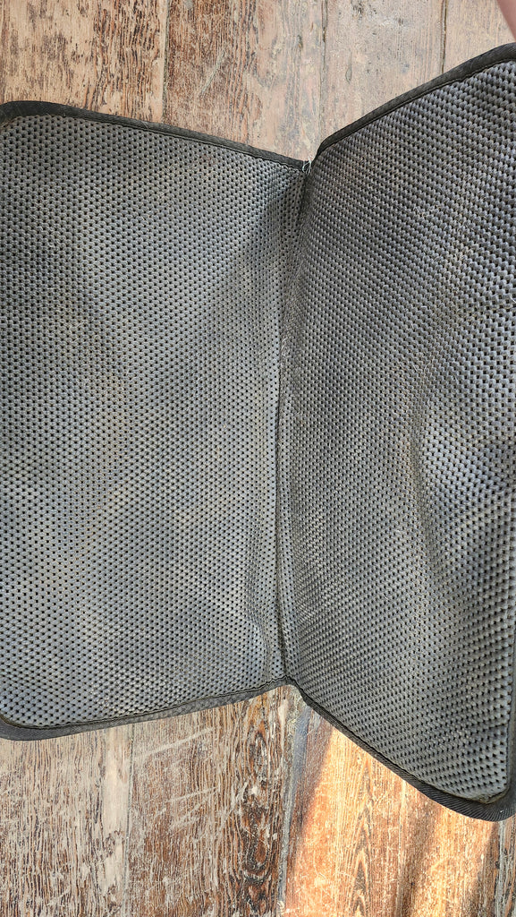 REINSMAN Square Tacky Too Swayback Contour Pad is designed to assist in fitting a saddle to a horse who experiences bridging across their back because of a lower than typical curve. Did you know a swaybacked horse can be young and underdeveloped, short coupled, or an older horse? When a horse has a dropped back, he needs pad support to fill in the gaps between his back and the saddle tree to help distribute the rider's weight to eliminate pressure points.