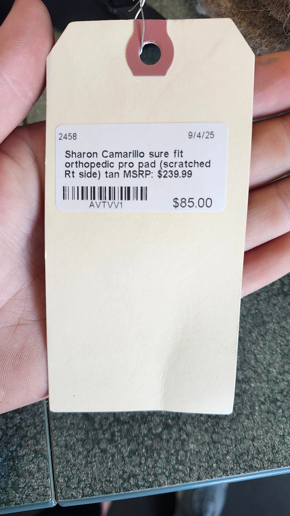 This Sharon Camarillo Sure Fit orthopedic Pad Good used condition. Does have a scratch on the right side that doesn't effect the used of the pad.
