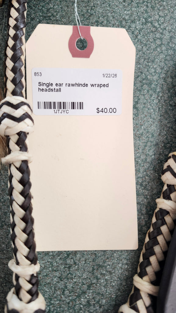 This is a gently used but still in great condition single ear headstall that is wrapped with rawhide.