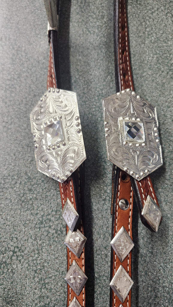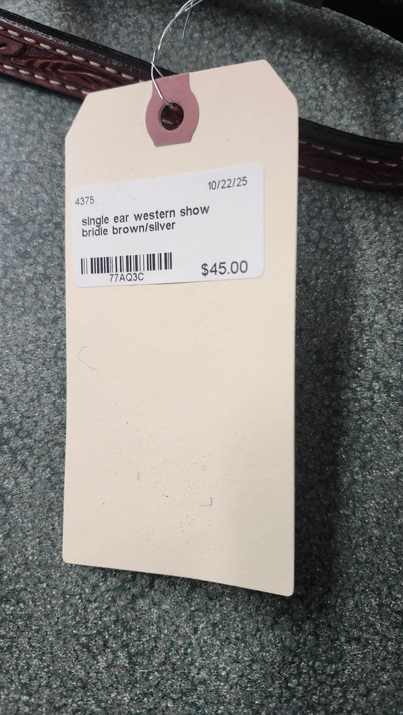 This NEW Single Ear Western show Bridle is in excellent used condition. Features argentina Cow leather as well as silver buckles and ear piece.