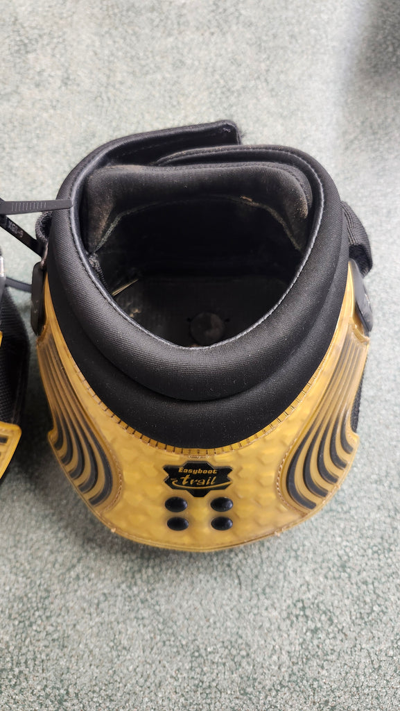 This is a used but still in great condition pair of easyboot trail hoof boots