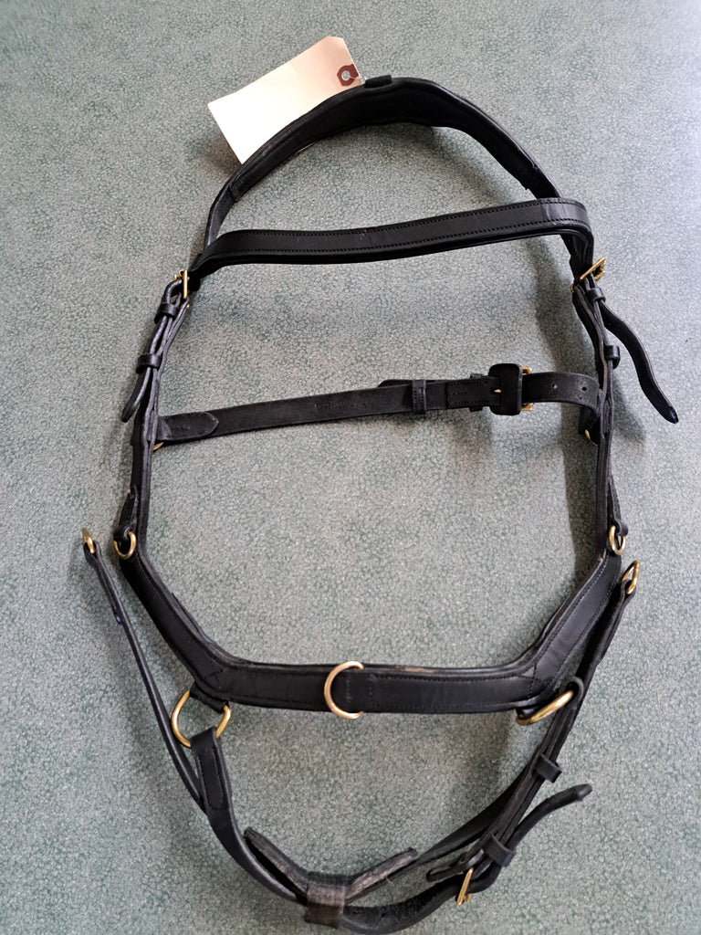 This Standard Horse Rambo Micklem Competition Bridle is in great used condition. Comes with a palin browband with gold hardware.