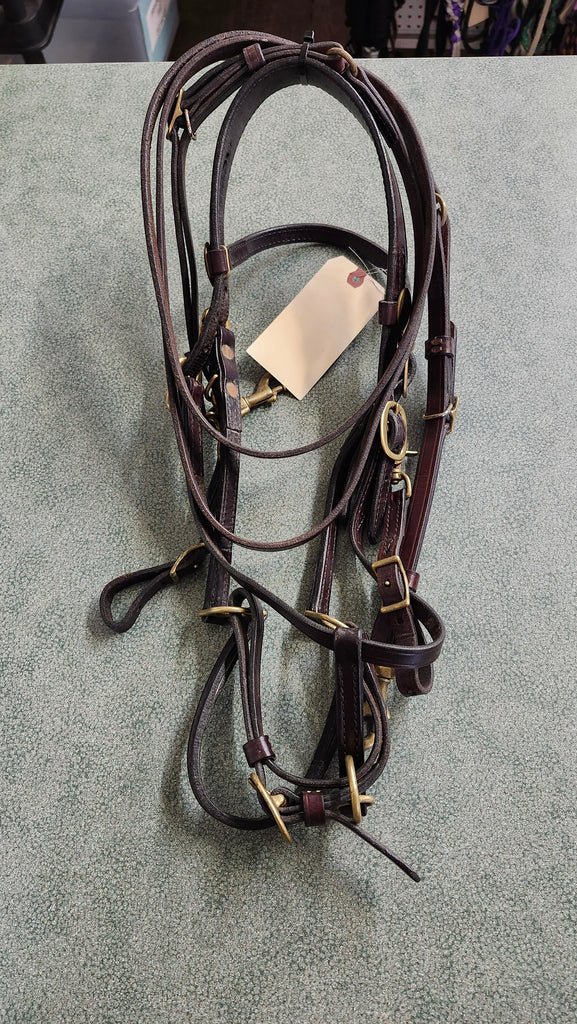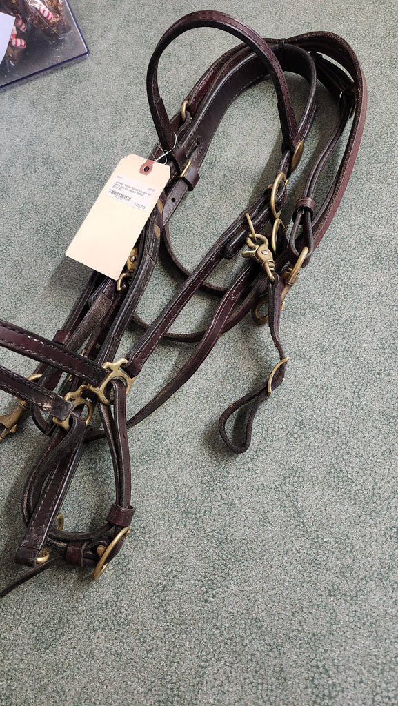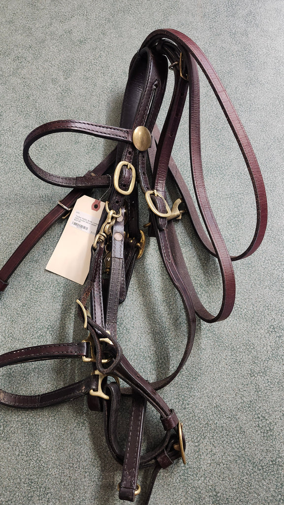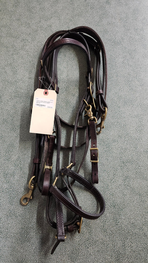 This is a used but still in good condition tucker halter bridle combination whcih also includes a pair of quick change loop reins.