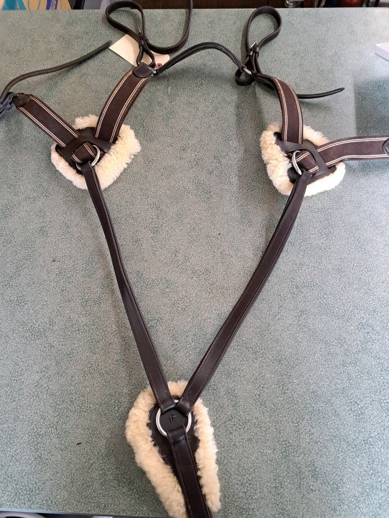 This is a used but still in excellent condition 5 point english Breastplate with fleece.