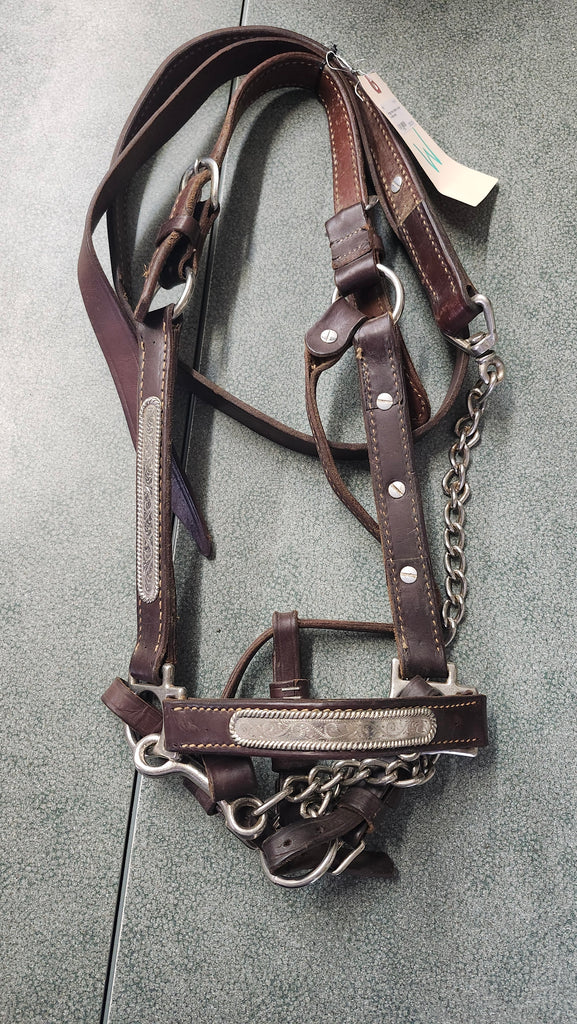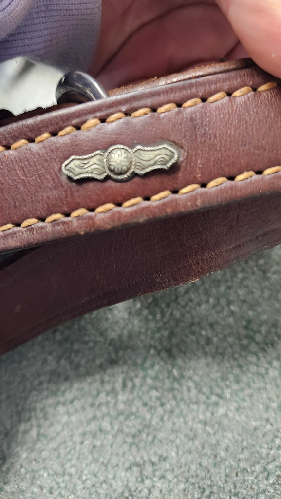 This Vintage Show halter with Lead is in great used condition for its age. The halter features a very simple design with mininal silver accents. The lead matches the halter as well.